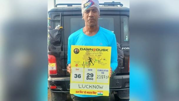 लखनऊ: स्वास्थ्य जागरुकता और पर्यावरण संरक्षण का संदेश लेकर अरुणाचल प्रदेश से दौड़ लगा रहे धावक आशीष कासोदेकर सोमवार को लखनऊ पहुंचे।